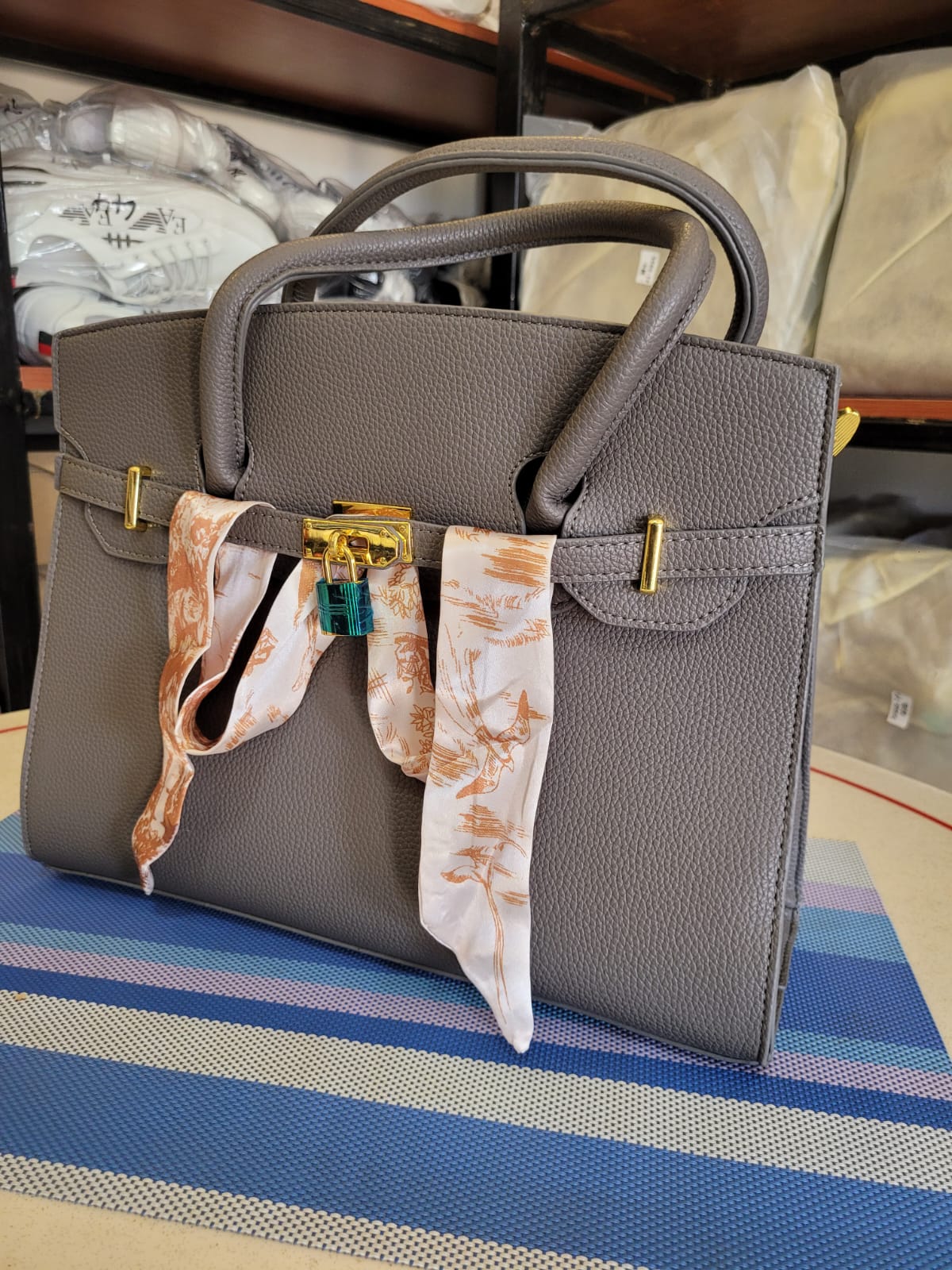 Special Feature: Silk style twilly scarf, Signature padlock.